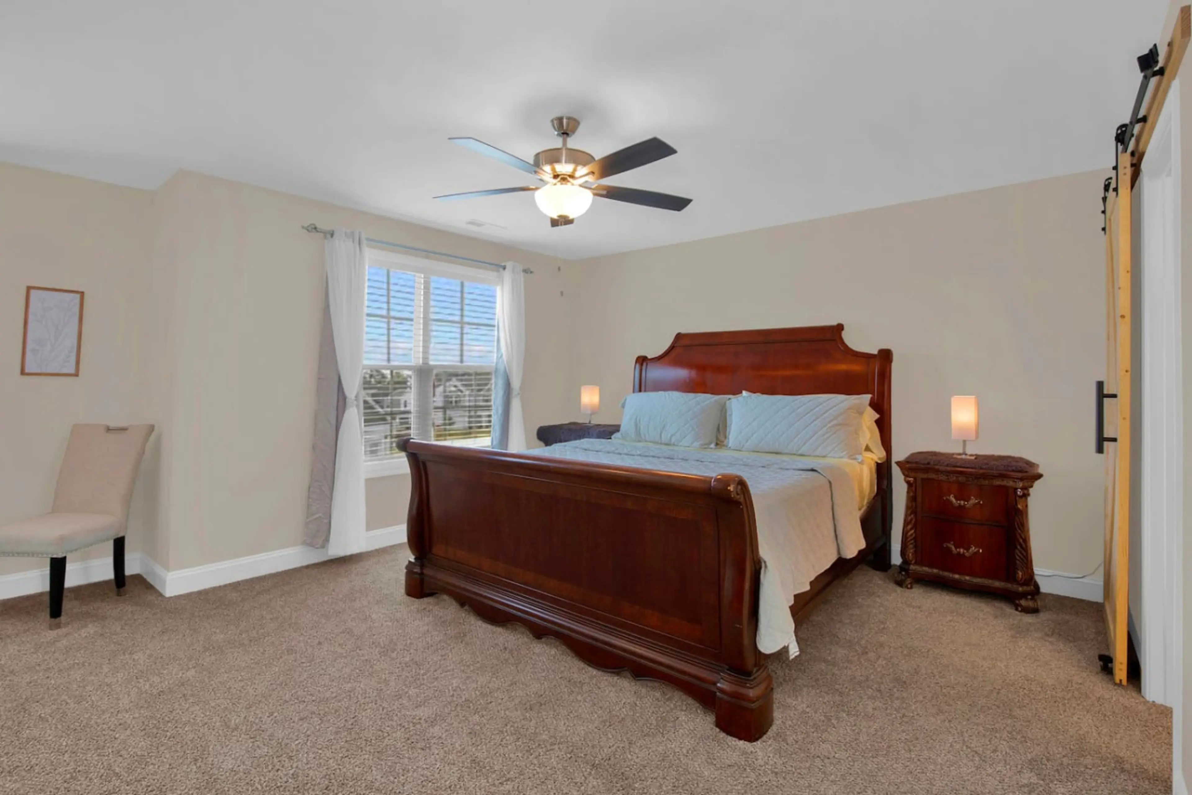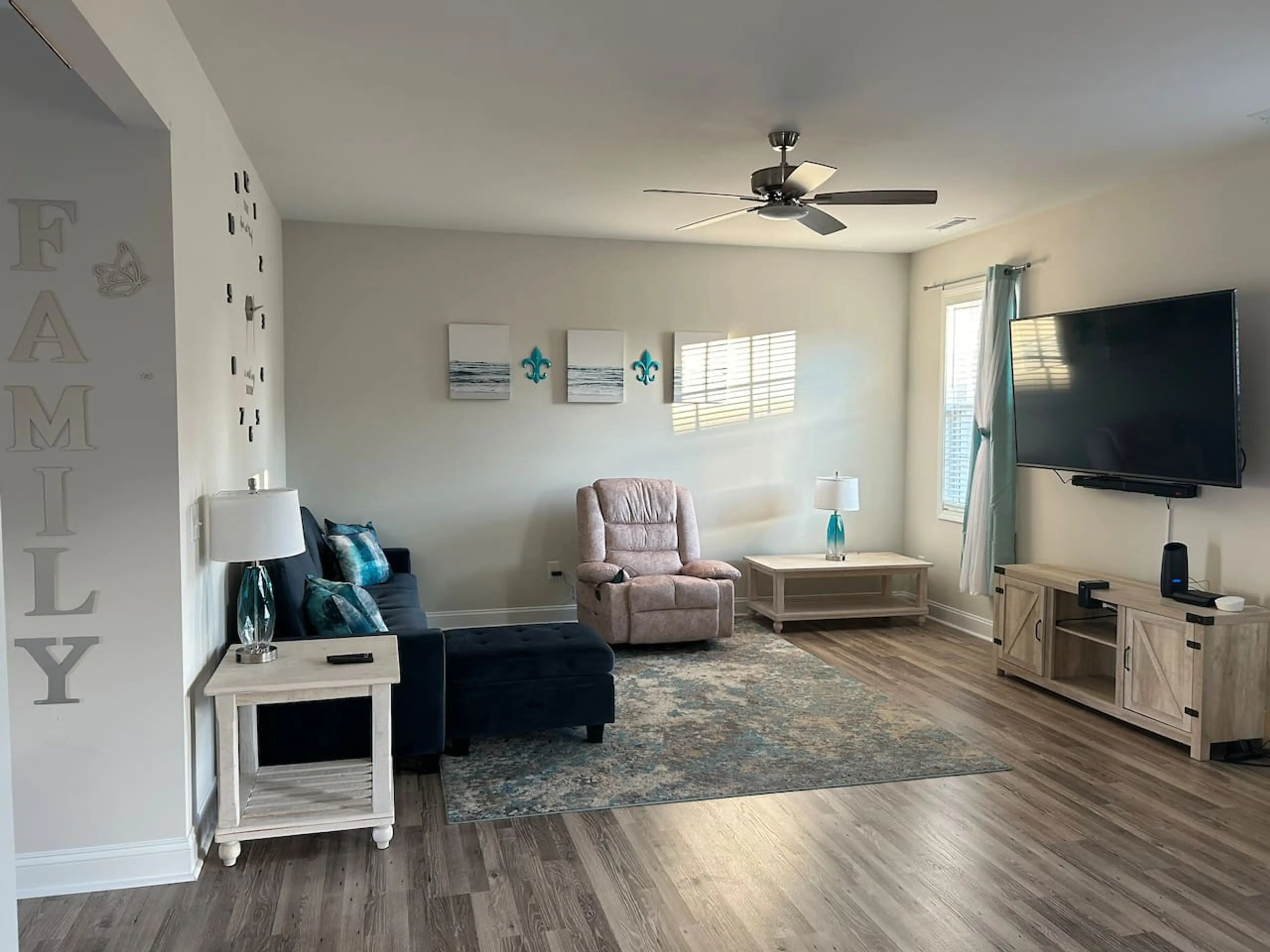 Welcome to Your Home Away From Home! This spacious 4-bedroom, 2-bathroom home comfortably accommodates 8 guests. Enjoy the open floor plan with a cozy living room featuring a 65" smart TV and plush couch. Each bedroom has its own TV, and the master boasts a king-size bed and 50" TV. The fully-e...